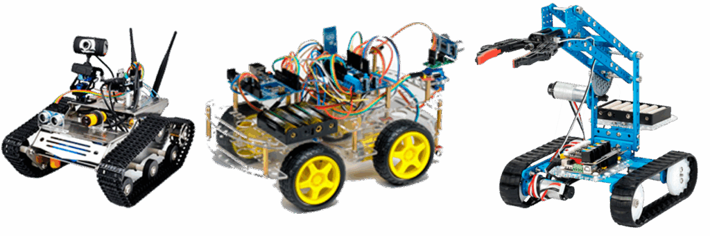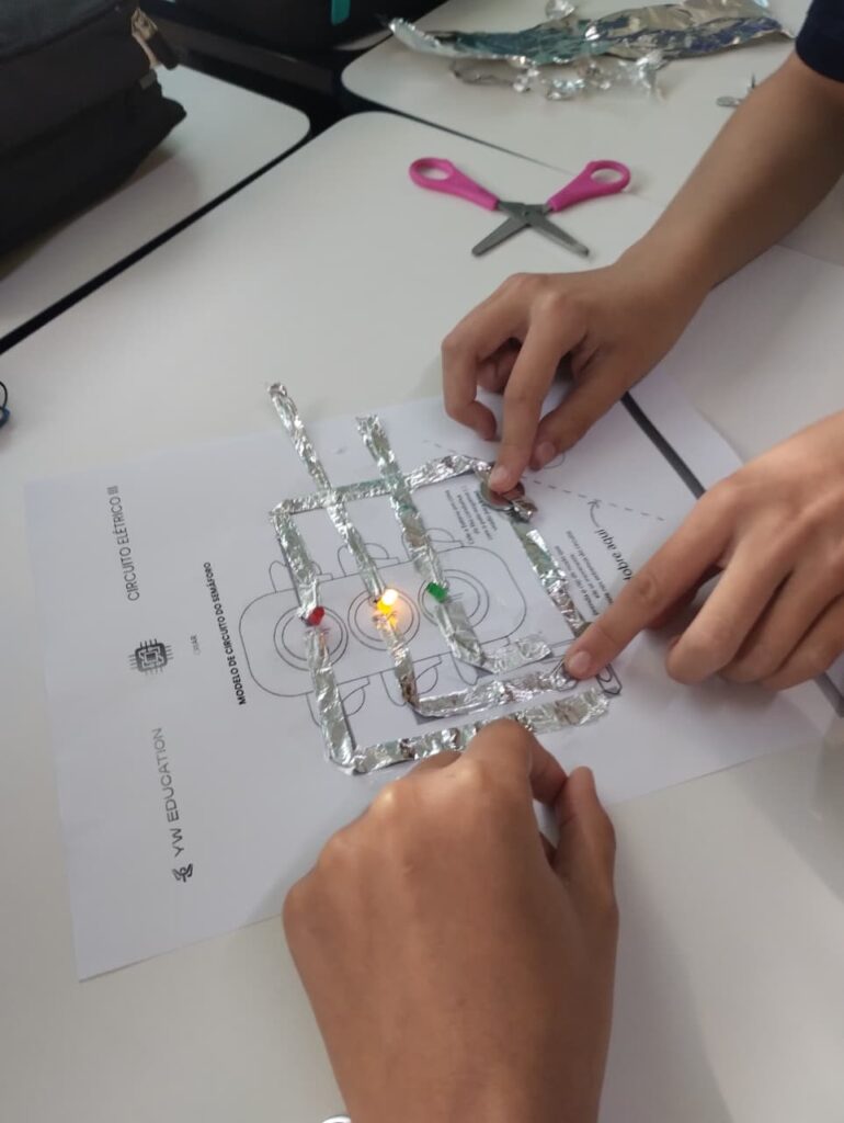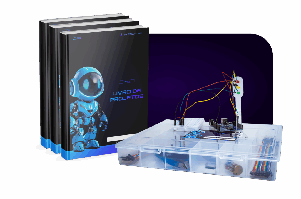 Cada aluno recebe um kit exclusivo com peças e componentes eletrônicos, incentivando a autonomia, a criatividade e a aplicação dos conceitos dentro e fora da sala de aula.